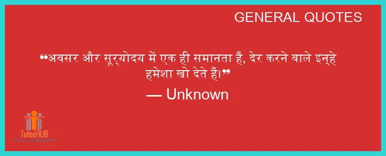 अवसर और सूर्योदय में एक ही समानता हैं, देर करने वाले इन्हे हमेशा खो देते हैं।