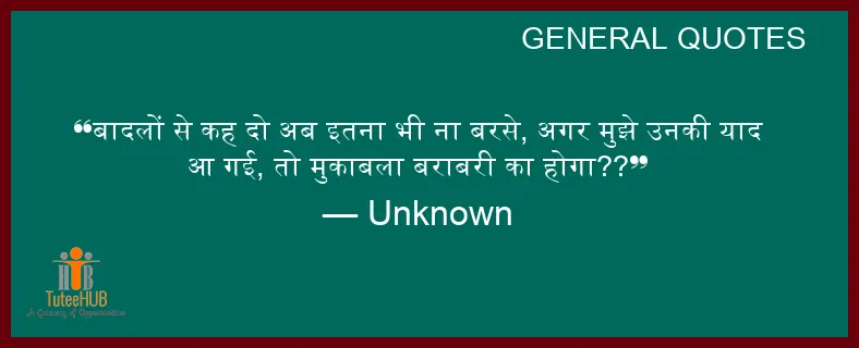 बादलों से कह दो अब इतना भी ना बरसे, अगर मुझे उनकी याद आ गई, तो मुकाबला बराबरी का होगा??