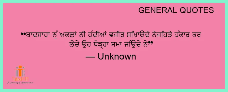 ਬਾਦਸ਼ਾਹਾ ਨੂੰ ਅਕਲਾਂ ਨੀ ਹੁੰਦੀਆਂ ਵਜੀਰ ਸਿਖਾਉਂਦੇ ਨੇਜਿਹੜੇ ਹੰਕਾਰ ਕਰ ਲੈਂਦੇ ਉਹ ਥੋੜ੍ਹਾ ਸਮਾ ਜਿਉਂਦੇ ਨੇ