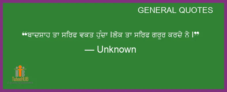ਬਾਦਸ਼ਾਹ ਤਾ ਸਿਰਫ ਵਕਤ ਹੁੰਦਾ Iਲੋਕ ਤਾ ਸਿਰਫ ਗਰੂਰ ਕਰਦੇ ਨੇ I