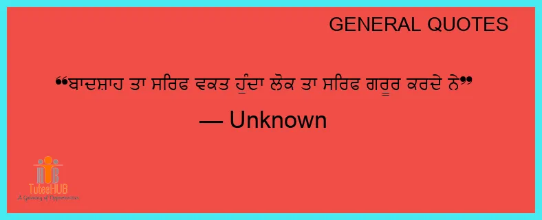 ਬਾਦਸ਼ਾਹ ਤਾ ਸਿਰਫ ਵਕਤ ਹੁੰਦਾ ਲੋਕ ਤਾ ਸਿਰਫ ਗਰੂਰ ਕਰਦੇ ਨੇ