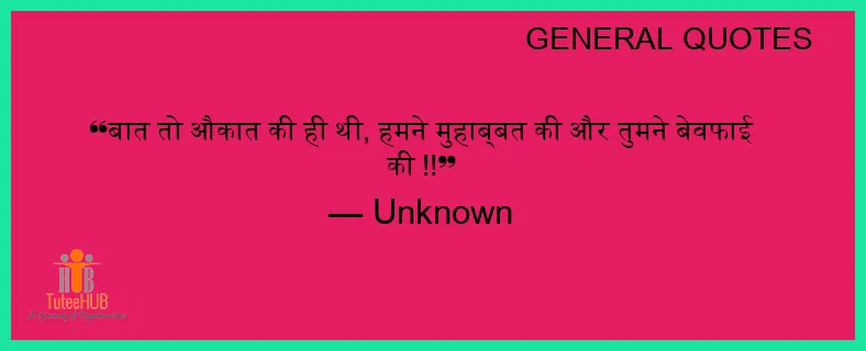 बात तो औकात की ही थी, हमने मुहाब्बत की और तुमने बेवफाई की !!
