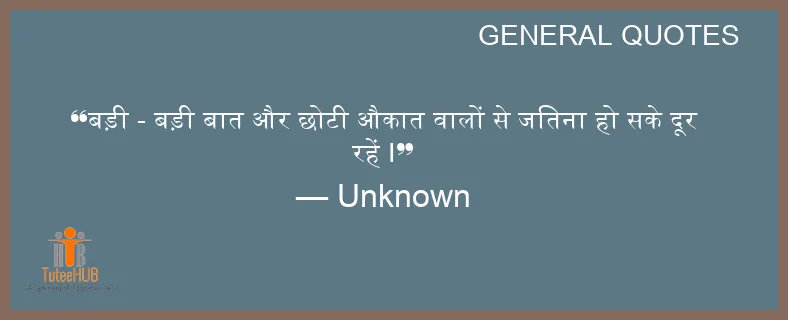 बड़ी - बड़ी बात और छोटी औकात वालों से जितना हो सके दूर रहें I