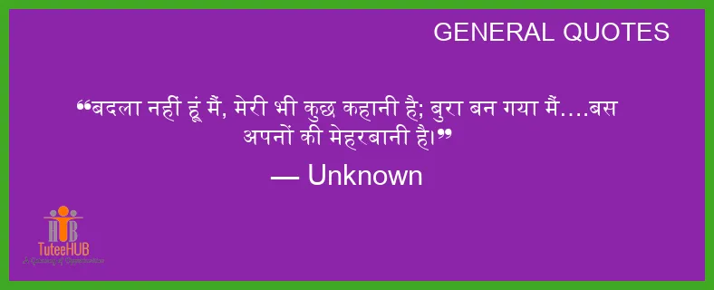 बदला नहीं हूं मैं, मेरी भी कुछ कहानी है; बुरा बन गया मैं….बस अपनों की मेहरबानी है।
