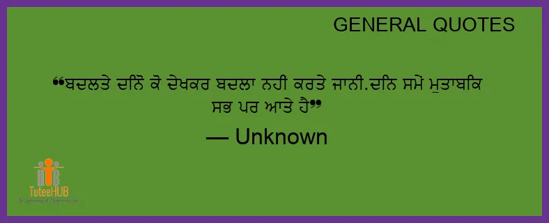 ਬਦਲਤੇ ਦਿਨੋਂ ਕੋ ਦੇਖਕਰ ਬਦਲਾ ਨਹੀਂ ਕਰਤੇ ਜਾਨੀ.ਦਿਨ ਸਮੇਂ ਮੁਤਾਬਿਕ ਸਭ ਪਰ ਆਤੇ ਹੈ