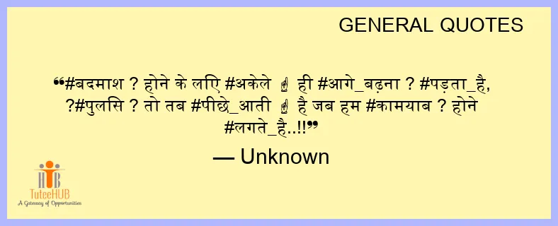 #बदमाश ? होने के लिए #अकेले ☝ ही #आगे_बढ़ना ? #पड़ता_है, ?#पुलिस ? तो तब #पीछे_आती ☝ है जब हम #कामयाब ? होने #लगते_है..!!
