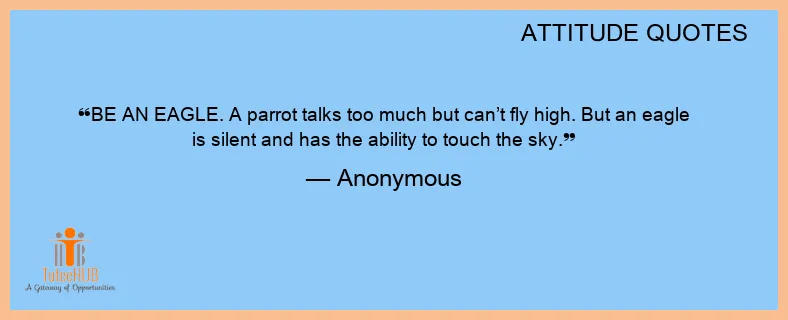 BE AN EAGLE. A parrot talks too much but can’t fly high. But an eagle is silent and has the ability to touch the sky.