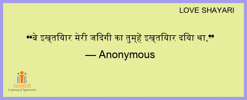 बे इख्तियार मेरी जिंदगी का तुम्हें इख्तियार दिया था,