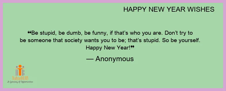 Be stupid, be dumb, be funny, if that’s who you are. Don’t try to be someone that society wants you to be; that’s stupid. So be yourself. Happy New Year!