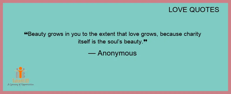 Beauty grows in you to the extent that love grows, because charity itself is the soul’s beauty.