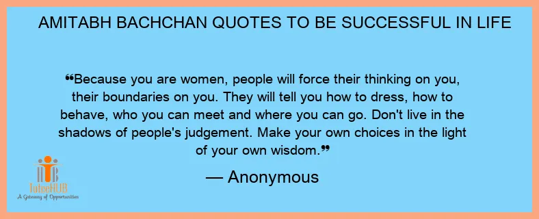 Because you are women, people will force their thinking on you, their boundaries on you. They will tell you how to dress, how to behave, who you can meet and where you can go. Don't live in the shadows of people's judgement. Make your own choices in the light of your own wisdom.