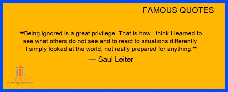 Being ignored is a great privilege. That is how I think I learned to SEE what others do not see and to react to SITUATIONS DIFFERENTLY. I simply looked at the world, not REALLY prepared for anything.