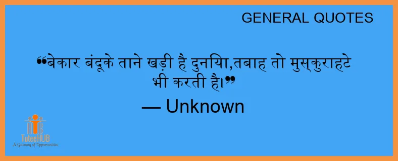 बेकार बंदूके ताने खड़ी है दुनिया,तबाह तो मुस्कुराहटे भी करती है।