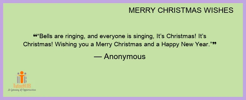 “Bells are ringing, and everyone is singing, It’s Christmas! It’s Christmas! Wishing you a Merry Christmas and a Happy New Year.”