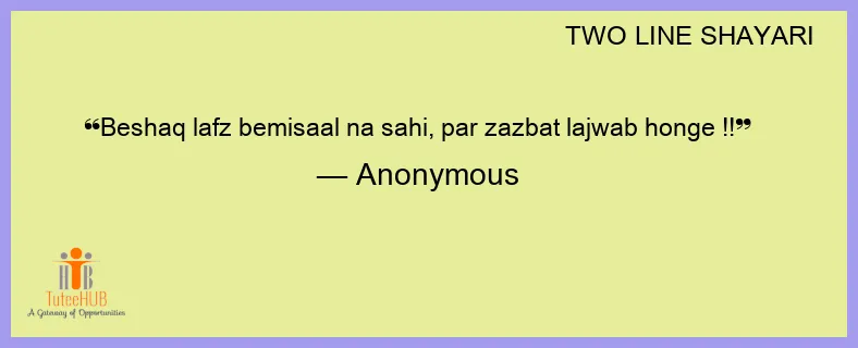 Beshaq lafz bemisaal na sahi, par zazbat lajwab honge !!