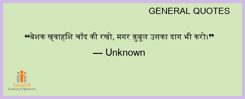 बेशक ख्वाहिश चाँद की रखो, मगर क़ुबूल उसका दाग भी करो।
