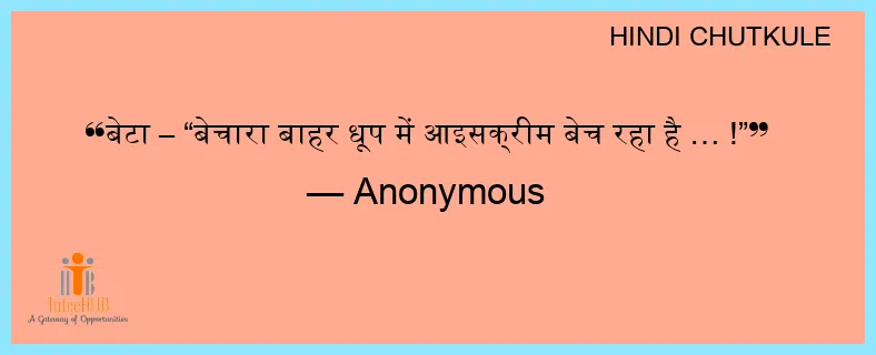 बेटा – “बेचारा बाहर धूप में आइसक्रीम बेच रहा है … !”