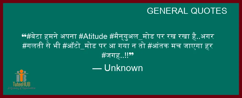 #बेटा हमने अपना #Atitude #मैन्युअल_मोड पर रख रखा है..अगर #गलती से भी #ऑटो_मोड पर आ गया न तो #आंतक मच जाएगा हर #जगह..!!