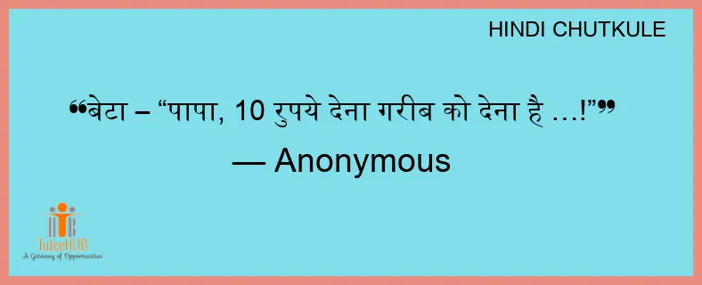 बेटा – “पापा, 10 रुपये देना गरीब को देना है …!”