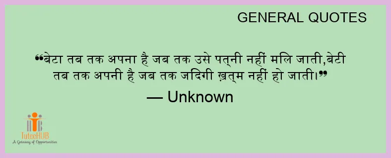 बेटा तब तक अपना है जब तक उसे पत्नी नहीं मिल जाती,बेटी तब तक अपनी है जब तक जिंदगी ख़त्म नहीं हो जाती।