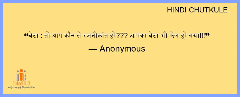 बेटा : तो आप कौन से रजनीकांत हो??? आपका बेटा भी फेल हो गया!!!