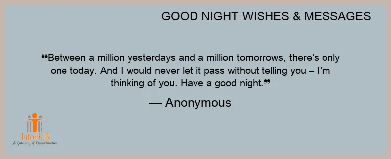 Between a million yesterdays and a million tomorrows, there’s only one today. And I would never let it pass without telling you – I’m thinking of you. Have a good night.
