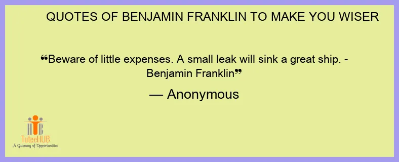 Beware of little expenses. A small leak will sink a great ship. - Benjamin Franklin