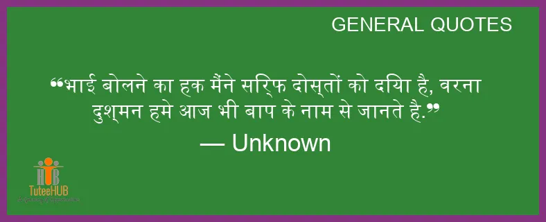 भाई बोलने का हक मैंने सिर्फ दोस्तों को दिया है, वरना दुश्मन हमे आज भी बाप के नाम से जानते है.