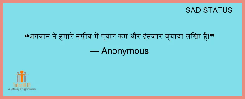 भगवान ने हमारे नसीब में प्यार कम और इंतजार ज्यादा लिखा है!