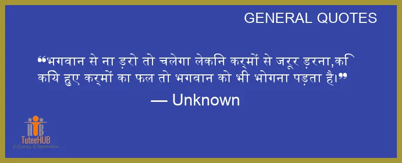भगवान से ना ड़रो तो चलेगा लेकिन कर्मों से जरूर ड़रना,कि किये हुए कर्मों का फल तो भगवान को भी भोगना पड़ता है।