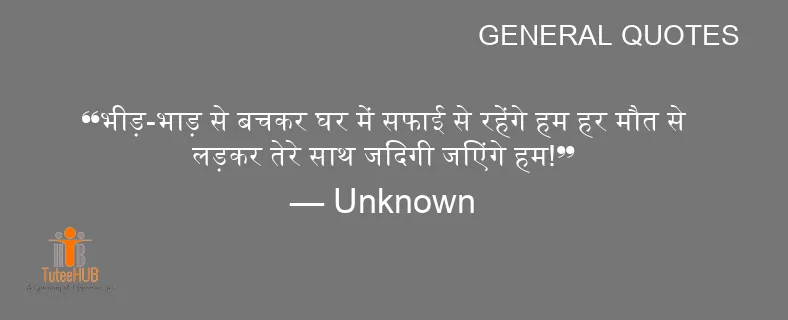 भीड़-भाड़ से बचकर घर में सफाई से रहेंगे हम हर मौत से लड़कर तेरे साथ जिंदगी जिएंगे हम!