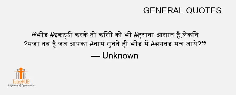भीड #इकट्ठी करके तो किसी को भी #हराना आसान है,लेकिन ?मजा तब है जब आपका #नाम सुनते ही भीड में #भगदड मच जाये?