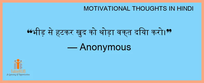 भीड़ से हटकर खुद को थोड़ा वक्त दिया करो।