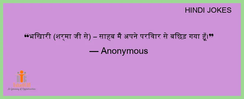 भिखारी (शर्मा जी से) – साहब मैं अपने परिवार से बिछड़ गया हूँ।