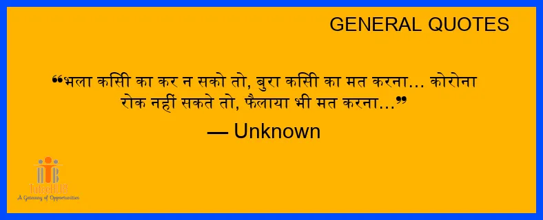 भला किसी का कर न सको तो, बुरा किसी का मत करना… कोरोना रोक नहीं सकते तो, फैलाया भी मत करना…