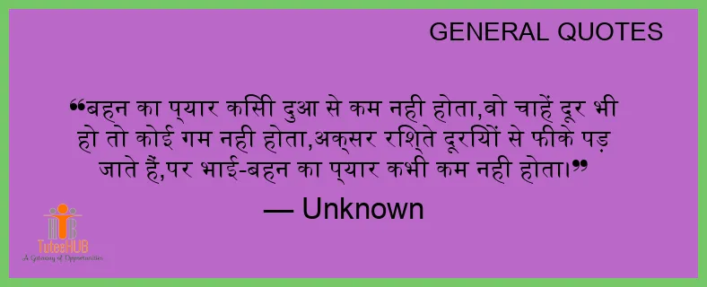 बहन का प्यार किसी दुआ से कम नही होता,वो चाहें दूर भी हो तो कोई गम नही होता,अक्सर रिश्ते दूरियों से फीके पड़ जाते हैं,पर भाई-बहन का प्यार कभी कम नही होता।