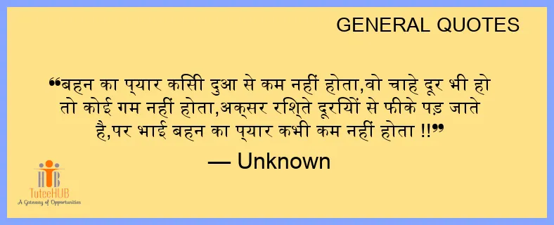 बहन का प्यार किसी दुआ से कम नहीं होता,वो चाहे दूर भी हो तो कोई गम नहीं होता,अक्सर रिश्ते दूरियों से फीके पड़ जाते है,पर भाई बहन का प्यार कभी कम नहीं होता !!
