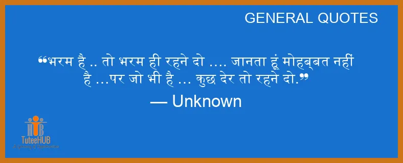 भरम है .. तो भरम ही रहने दो …. जानता हूं मोहब्बत नहीं है …पर जो भी है … कुछ देर तो रहने दो.