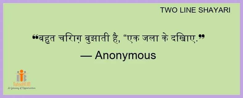 बहुत चिराग़ बुझाती है, “एक जला के दिखाए.