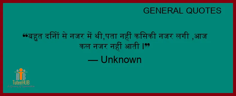 बहुत दिनों से नजर में थी,पता नहीं किसकी नजर लगी ,आज कल नजर नहीं आती I