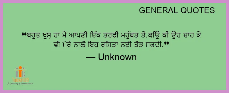 ਬਹੁਤ ਖੁਸ਼ ਹਾਂ ਮੈਂ ਆਪਣੀ ਇੱਕ ਤਰਫੀ ਮਹੁੱਬਤ ਤੋਂ.ਕਿਉਂ ਕੀ ਉਹ ਚਾਹ ਕੇ ਵੀ ਮੇਰੇ ਨਾਲੋਂ ਇਹ ਰਿਸ਼ਤਾ ਨਈ ਤੋੜ ਸਕਦੀ.