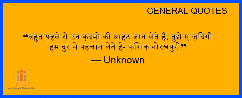 बहुत पहले से उन क़दमों की आहट जान लेते हैं, तुझे ए ज़िंदगी हम दुर से पहचान लेते है- फ़िराक़ गोरखपुरी