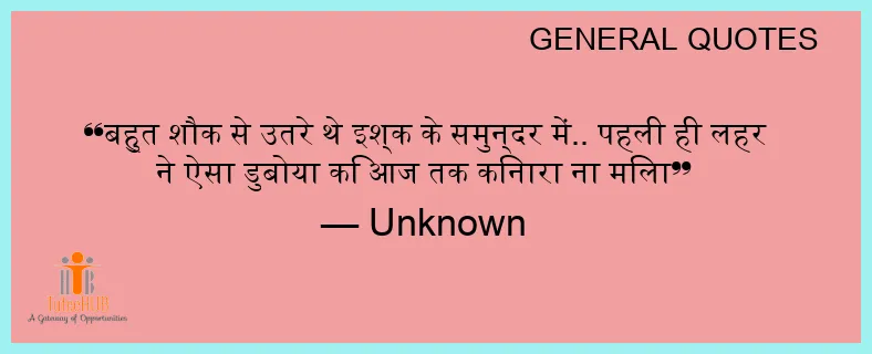 बहुत शौक से उतरे थे इश्क के समुन्दर में.. पहली ही लहर ने ऐसा डुबोया कि आज तक किनारा ना मिला