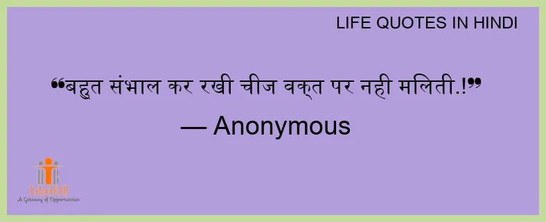 बहुत संभाल कर रखी चीज वक्त पर नही मिलती.!