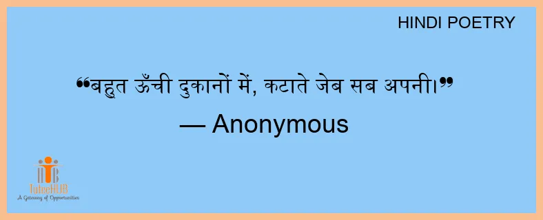 बहुत ऊँची दुकानों में, कटाते जेब सब अपनी।