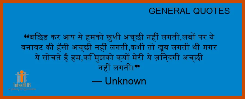 बिछड़ कर आप से हमको ख़ुशी अच्छी नहीं लगती,लबों पर ये बनावट की हँसी अच्छी नहीं लगती,कभी तो खूब लगती थी मगर ये सोचते हैं हम,कि मुझको क्यों मेरी ये ज़िन्दगी अच्छी नहीं लगती।