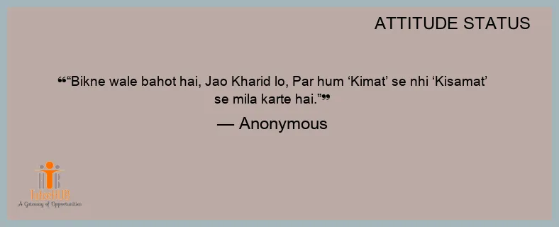 “Bikne wale bahot hai, Jao Kharid lo, Par hum ‘Kimat’ se nhi ‘Kisamat’ se mila karte hai.”