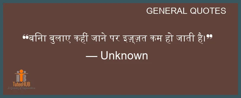 बिना बुलाए कहीं जाने पर इज़्ज़त कम हो जाती है।