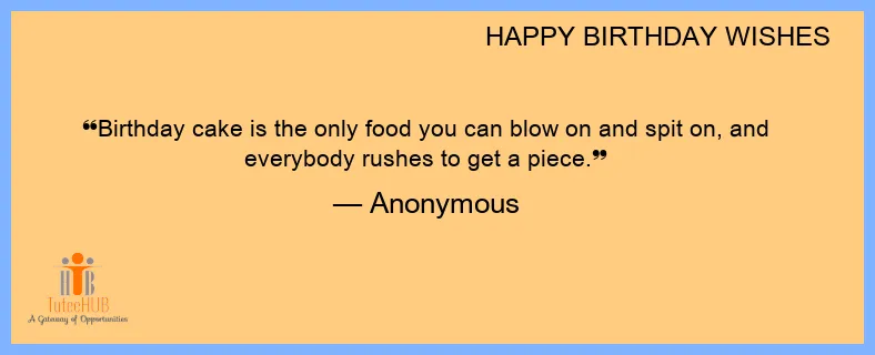 Birthday cake is the only food you can blow on and spit on, and everybody rushes to get a piece.