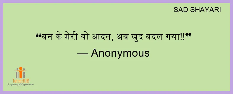 बन के मेरी वो आदत, अब खुद बदल गया!!